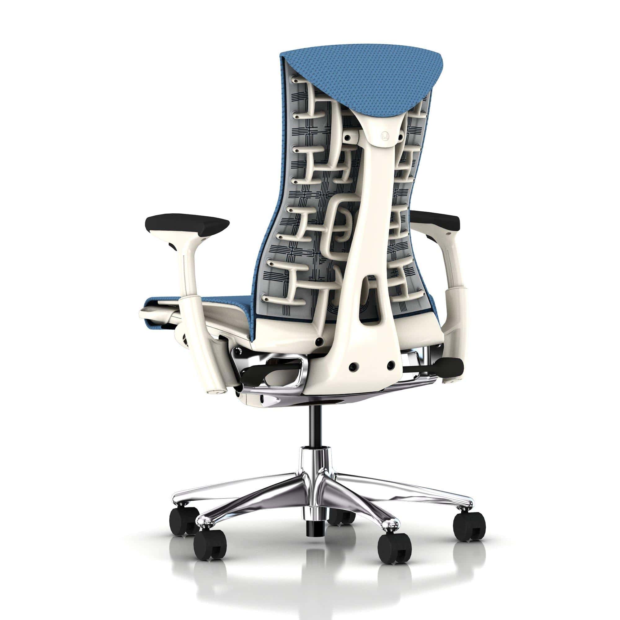 Karakteristiek voor de Herman Miller Embody is de aparte rugleuning die op een abstracte manier doet denken aan een wervelkolom. De functionaliteit van de Herman Miller Embody stoel is volledig in zicht en is onderdeel gemaakt van het design. Door het ontwerp en gebruikte materialen geeft de Herman Miller Embody tijdens het zitten optimale drukverdeling, natuurlijke uitlijning en maximale ondersteuning. Zitten in een Embody geeft je het gevoel dat je zweeft zonder in onbalans te zijn. De Herman Miller Embody is ontworpen vanuit het idee dat men steeds meer en langer stilzit, waardoor vermoeidheid en stijfheid ontstaan. De stoel beweegt geheel met je lichaam mee. Door de dynamische oppervlaktedruk op de zitting en rug van de Embody, past deze zich automatisch aan de microbewegingen van je lichaam aan.