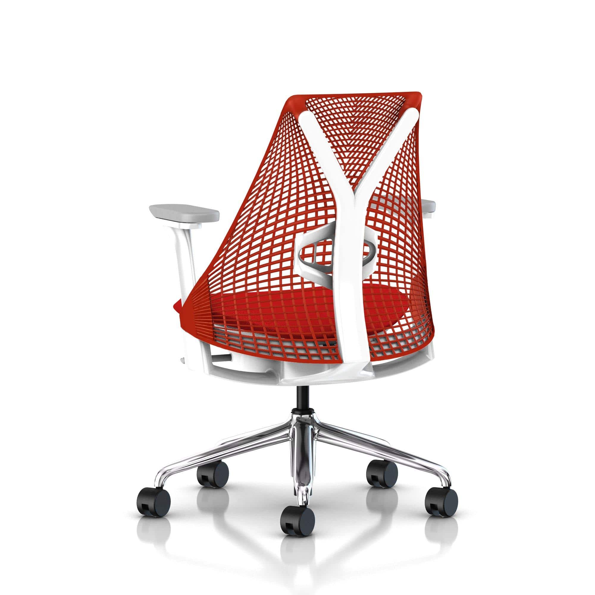 Geïnspireerd door de Golden Gate Bridge ontwierp Yves Behar de Herman Miller Sayl. De stoel moest maximaal kunnen presteren met een minimum aan materialen. De Y-constructie die op de rugleuning te zien is, komt overeen met de manier waarop kabels worden uitgestrekt vanaf de torens van een hangbrug. De elastomeerstrengen in de rugleuning ondersteunen je op een zodanige manier dat je wordt gestimuleerd tot bewegen. Dit komt door de verschillen in spanning en dikte van de strengen. Een prachtig ontwerp, elegante constructie, ergonomisch verantwoord, met respect voor het milieu. Door de combinatie van een Y-kolom met een net-bespannen of gestoffeerde flexibele rug geeft de Sayl je maximale ondersteuning waar het nodig is zonder bewegingsvrijheid te verliezen.