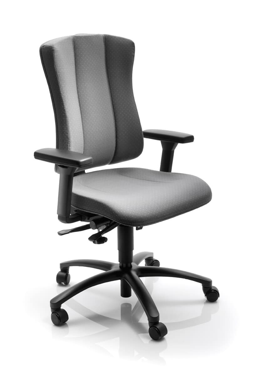 Höganäs+ bureaustoelen zijn niet alleen goed voor mensen met een bovengemiddeld groot postuur: we zijn sowieso erg positief over deze bureaustoelen omwille van hun nauwkeurige instelbaarheid. De Höganäs+ 501 (zowel het standaardformaat als het XL-formaat) is een van onze ergonomische probleemoplossers. Deze bureaustoel combineert zeer uitgebreide instelmogelijkheden met optimale ondersteuning en een hoge, royale rugleuning. We kunnen deze bureaustoel zodanig nauwkeurig op de behoeften en lichaamsmaten van de gebruiker instellen, dat de zitervaring persoonlijk wordt. Bovendien zijn alle onderdelen van deze bureaustoelen onderling uitwisselbaar: andere armleggers? Een andere rugleuning? Het kan allemaal! Zo kunnen we een oplossing op maat creëren. We helpen zelfs mensen met forse rugklachten weer aan een klachtenvrije werkdag met Höganäs.