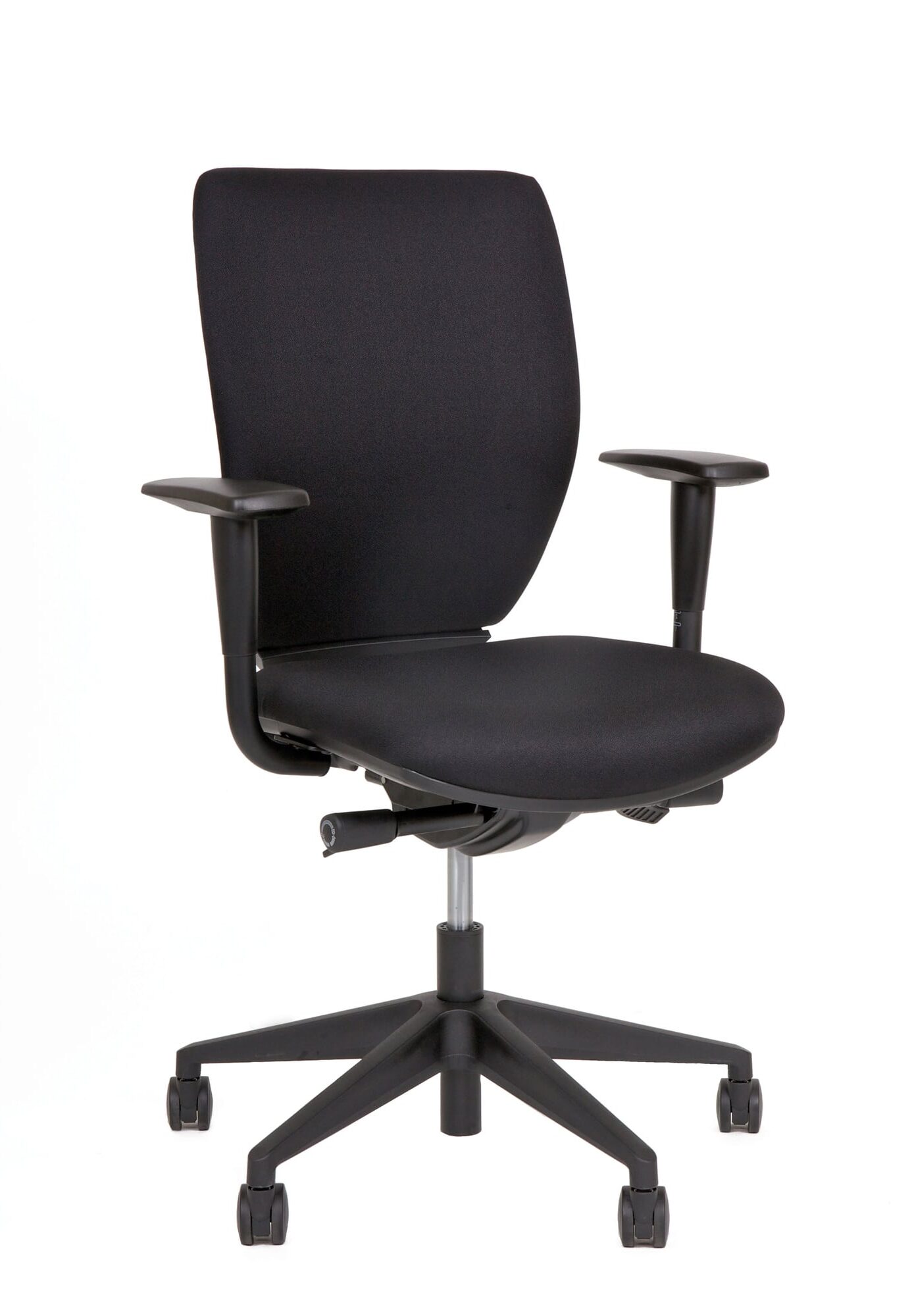De uitvoering waarin we deze bureaustoel aanbieden is geheel zwart. De stoel heeft een zwarte geheel gestoffeerde zitting en rugleuning. De rugleuning is aan de achterkant voorzien van een kunststof rugkap. Het frame en de voetster zijn gemaakt van zwart kunststof. De Lemosa is standaard voorzien van multifunctionele wielen, waardoor hij op iedere ondergrond gebruikt kan worden.