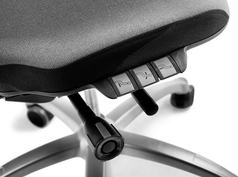 Wanneer de RH Extend goed op de lichaamsmaten van de gebruiker is ingesteld, beweegt hij op een prettige, natuurlijke manier met het lichaam mee. RH bureaustoelen hebben een inventief bewegingsmechaniek dat ook wel het tweepunts (2PP™) kantelmechaniek wordt genoemd. De twee punten verwijzen naar de twee scharnierpunten in ons lichaam: de knieën en heupen. Deze twee scharnierpunten in het lichaam en de twee scharnierpunten in de stoel vallen perfect samen. Wanneer de bureaustoel goed is ingesteld, stimuleert dit mechaniek de gebruiker onbewust om in beweging te komen vanuit de heupen en voeten. Breng je je lichaamszwaartepunt verder naar voren of naar achteren, beweegt de Extend met je mee.
