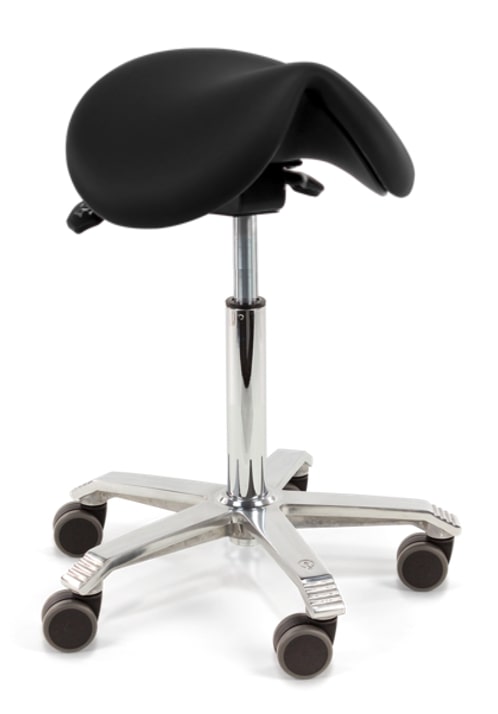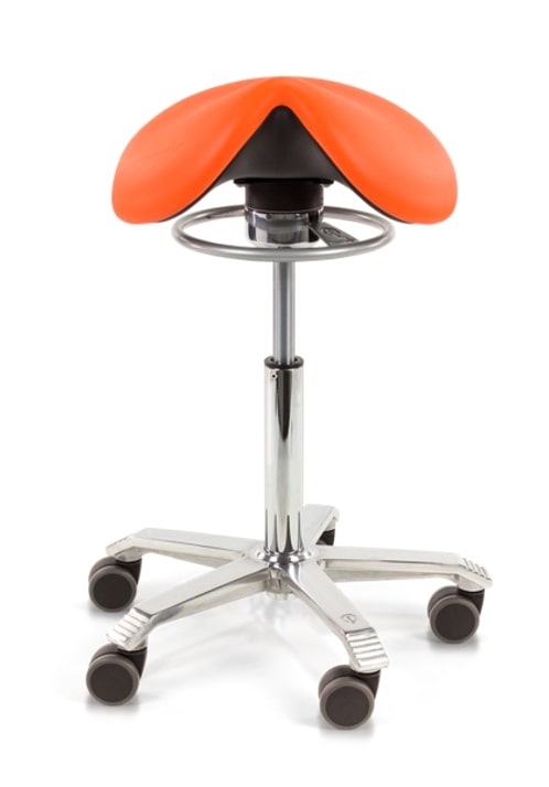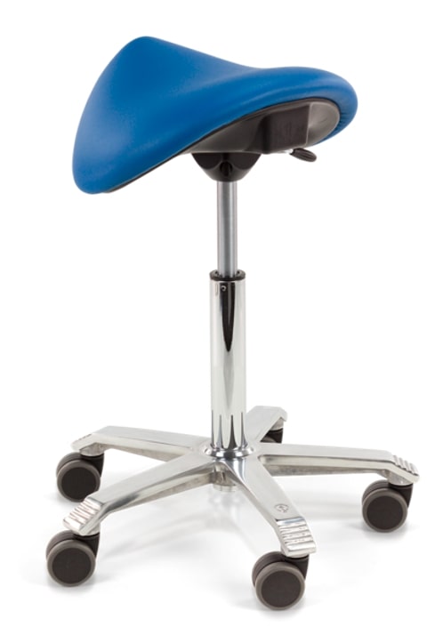 Je rolt moeiteloos heen en weer met een Score Jumper zadelkruk. Een dergelijke zadelkruk is daarom een grote aanwinst wanneer je tijdens je werkzaamheden veel dynamisch in de weer bent. Bijvoorbeeld in een behandelsetting of in een tandartsenpraktijk. Een ander groot voordeel is dat de drempel om op te staan laag is. Je staat sneller op van een zadelkruk dan vanaf een stoel of kruk waarop je in een 90 graden hoek zit.